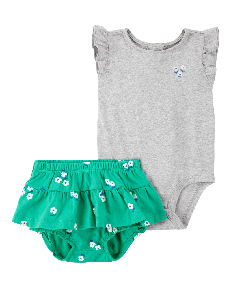 Made to match, this set for baby includes a short-sleeve bodysuit complete with a floral design, plus an easy on diaper cover short for a ready-to-go and always comfy outfit!