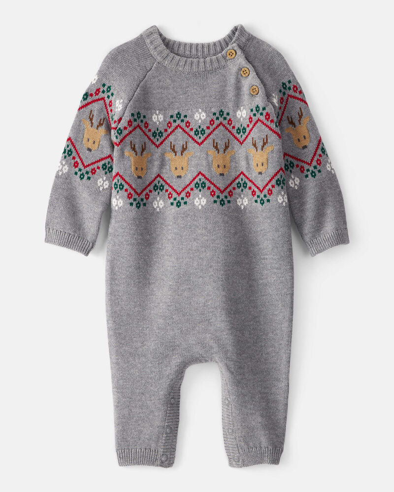 Introducing your little one's new go-to for cozy days filled with adventure! This delightful jumpsuit features a playful Fair Isle print that adds a touch of whimsy to any casual outing, while the soft, loose fit ensures they stay comfortable whether he's exploring the great indoors or braving the chilly outdoors. Crafted from a soft cotton blend, it's not only easy to care for (hello, machine washable!) but also made with Oeko-Tex certified fabric for peace of mind. With long sleeves and a simple crew neck design, dressing is a breeze, giving busy parents one less thing to worry about. Versatile and stylish, this jumpsuit effortlessly pairs with any outfit, making it an essential addition to your child's wardrobe.