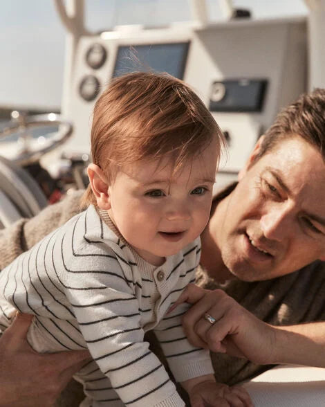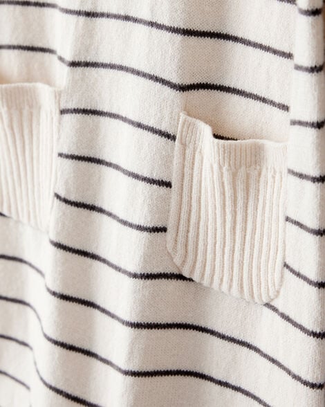 • Soft cotton rib knit with neutral horizontal stripes for a cozy, classic look