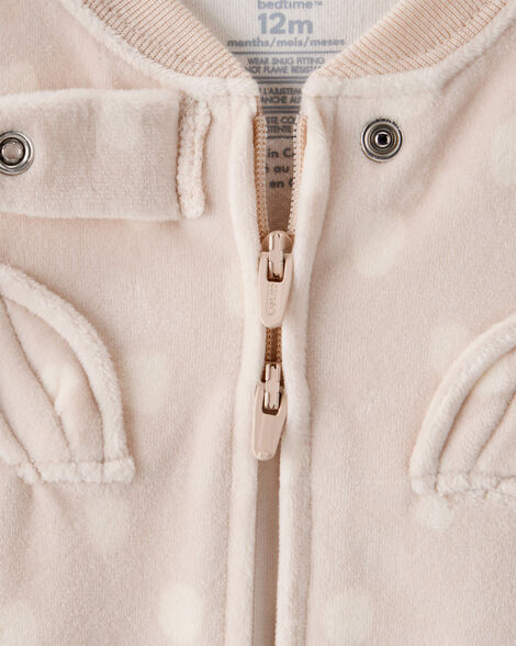Soft, sleepy, and ready for snuggles. This velvety DreamPlush fabric sleeper brings the woodland vibes with sweet deer details, dotted print, and built-in footies. A full-length zipper makes late-night changes simpler, while the soft velboa fabric keeps your baby comfy from twilight to morning giggles. Because bedtime should feel like a hug.
