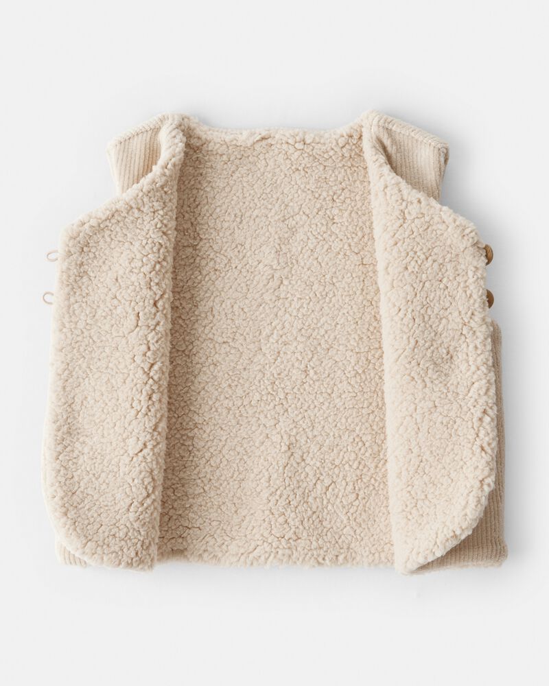 - V-neck vest with soft corduroy outer & sherpa lining for cozy warmth