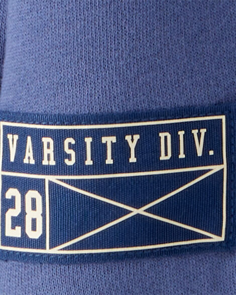 Add a pop of sporty style to his wardrobe with this sharp color block sweatshirt! Featuring a bold blue base with navy and ivory color blocking on the sleeves, this design brings a modern, dynamic look. Crafted from a soft cotton blend, it ensures all-day comfort while keeping him warm during cool days. The ribbed neckline offers a secure and cozy fit, and the athletic "Varsity Div" jock tag delivers sporty flair. Perfect for layering or rocking solo, this versatile sweatshirt is ideal for school or weekend adventures.