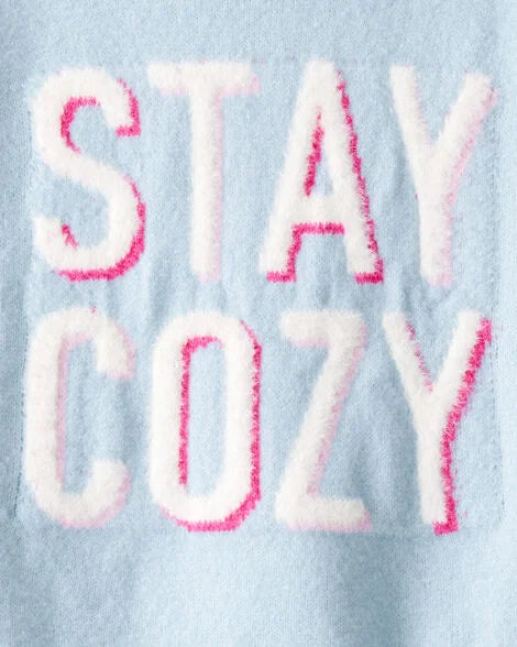 This light blue pullover does all the talking-literally. With bold fuzzy letters spelling out "STAY COZY," it's part pep talk, part go-to sweater. The relaxed fit and soft, brushed texture make it a layering champ whether it’s back-to-school mornings or couch days at home. It’s an easy yes for style and comfort in one neat package.