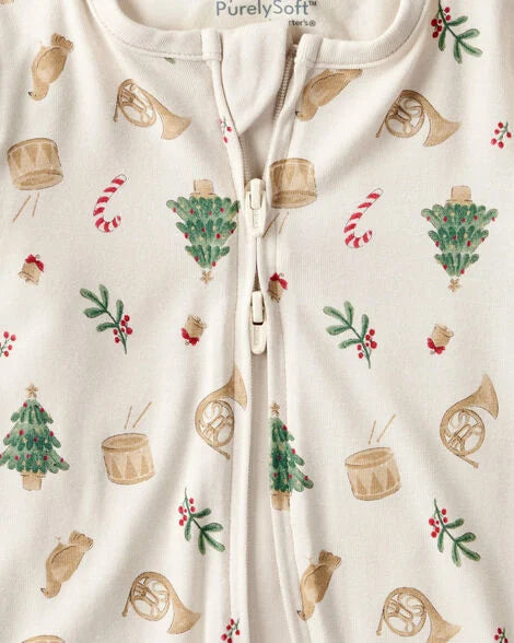 Carter's Baby Christmas Print PurelySoft Long-Sleeve Sleep & Play Pajamas - White