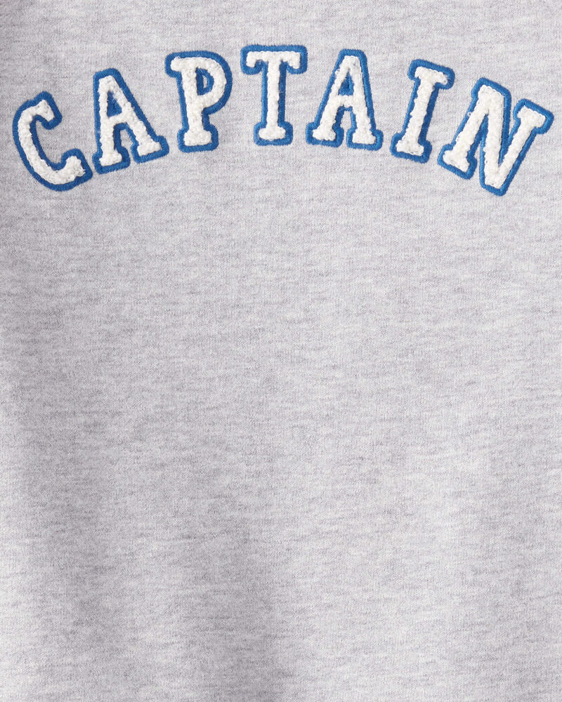 This toddler boy set features a soft, mid-weight pullover with a bold "CAPTAIN" slogan and colorblock sleeves for easy style. The matching joggers have red stripe details, a pull-on waistband, and adjustable drawstring for a comfy, secure fit. Perfect for playtime and everyday adventures.