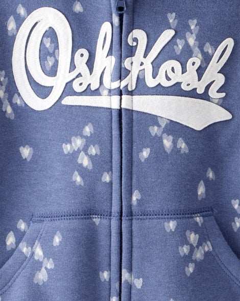 Oshkosh Toddler Heart Print OshKosh Fleece Logo Zip Jacket with Fleece Joggers