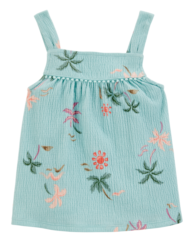 Stylish and soft, this floral tank is complete with pom pom detailing and a colorful print.